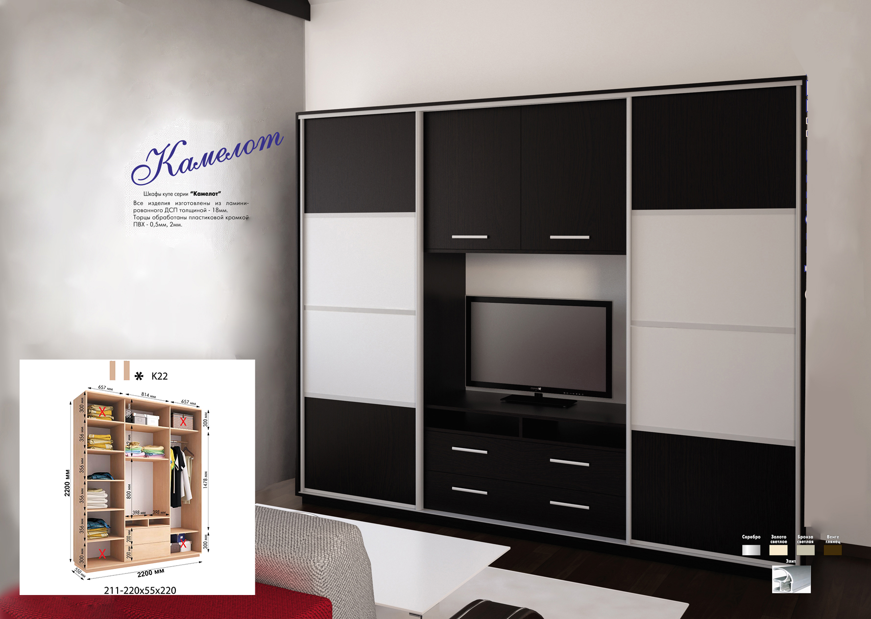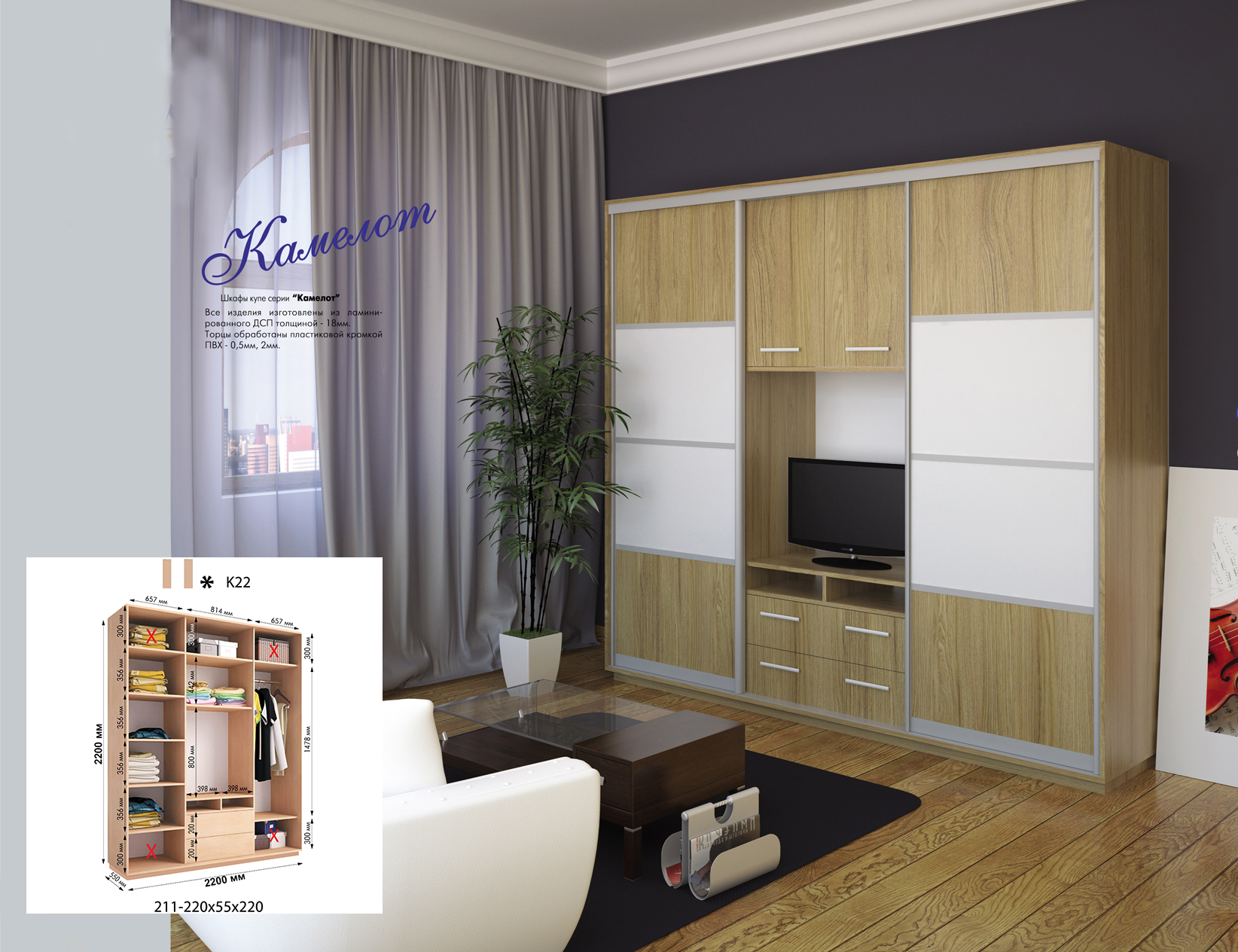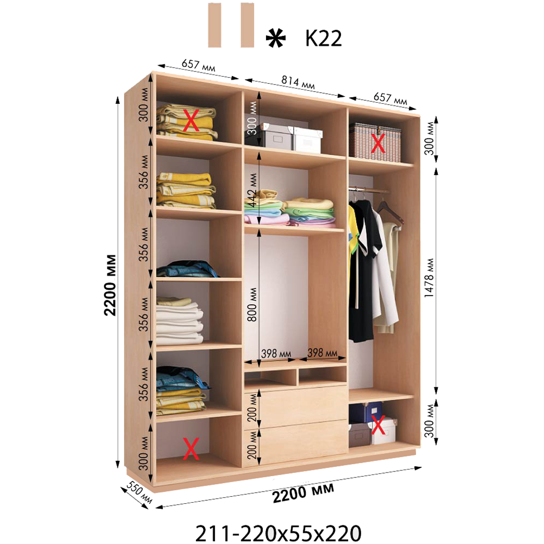 Розміри шафи: 2200*550*2200h
