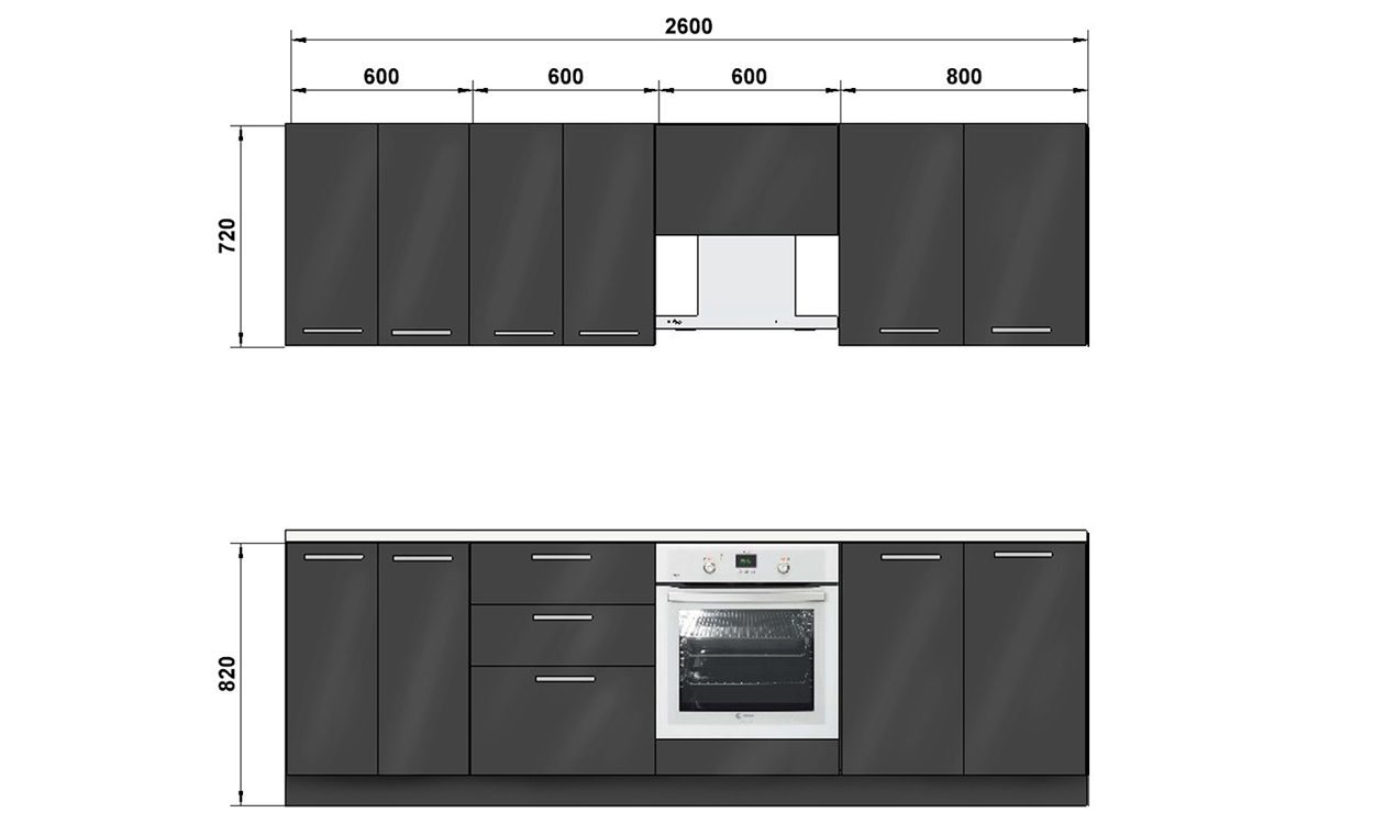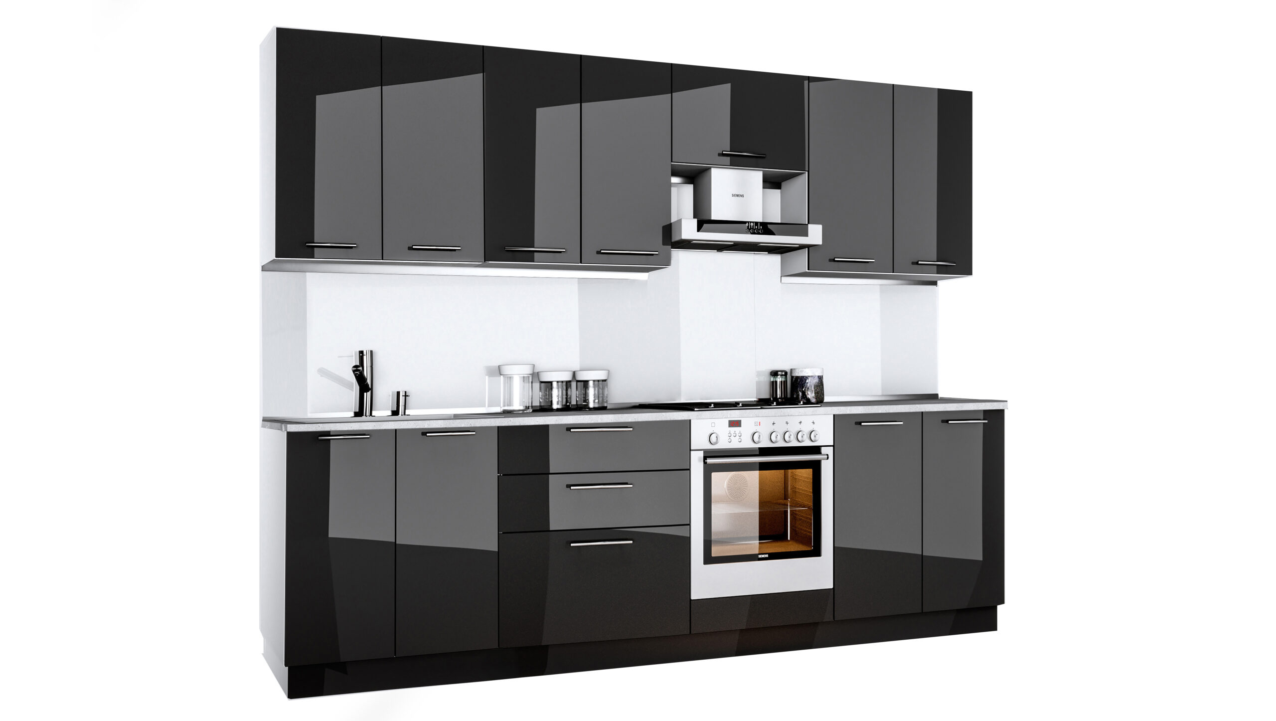 Кухня Б’янка з фарбованими глянцевими фасадами у чорному кольорі . Складаеться комплект з 8 окремих модулів. Обладнана зручними відділеннями з дверцятами та модулем з 3 шухлядами. Які повністю задовольняють всім потрібним функціоналом у користуванні.