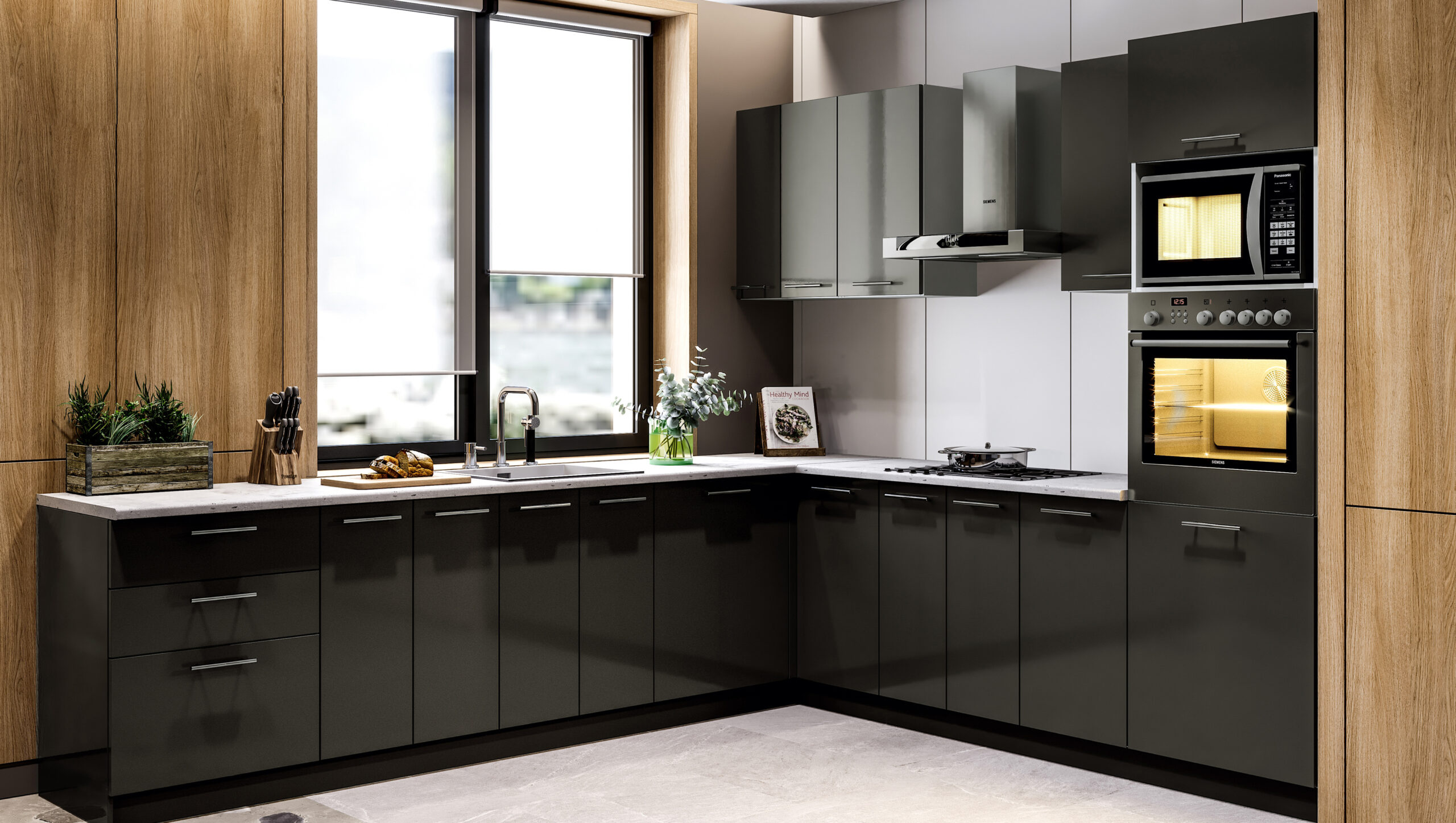 Модульні кухні – це ідеальне співвідношення високої якості, довговічності, естетичності, максимальної функціональності, практичності і цінової доступності. Всі елементи виконані за стандартним зразком, тому при оформленні приміщення не потрібне втручання дизайнера і розробка окремого дизайн-проекту.