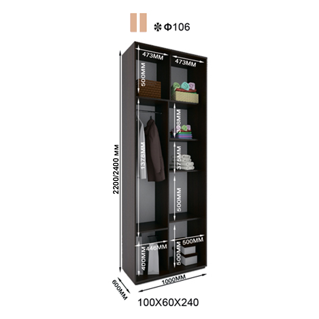 Розміри шафи: 1000*600*2400h / 1000*450*2400h *можливість зміни ширини та вистоти шафи