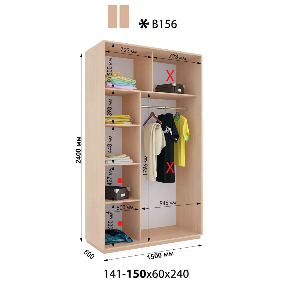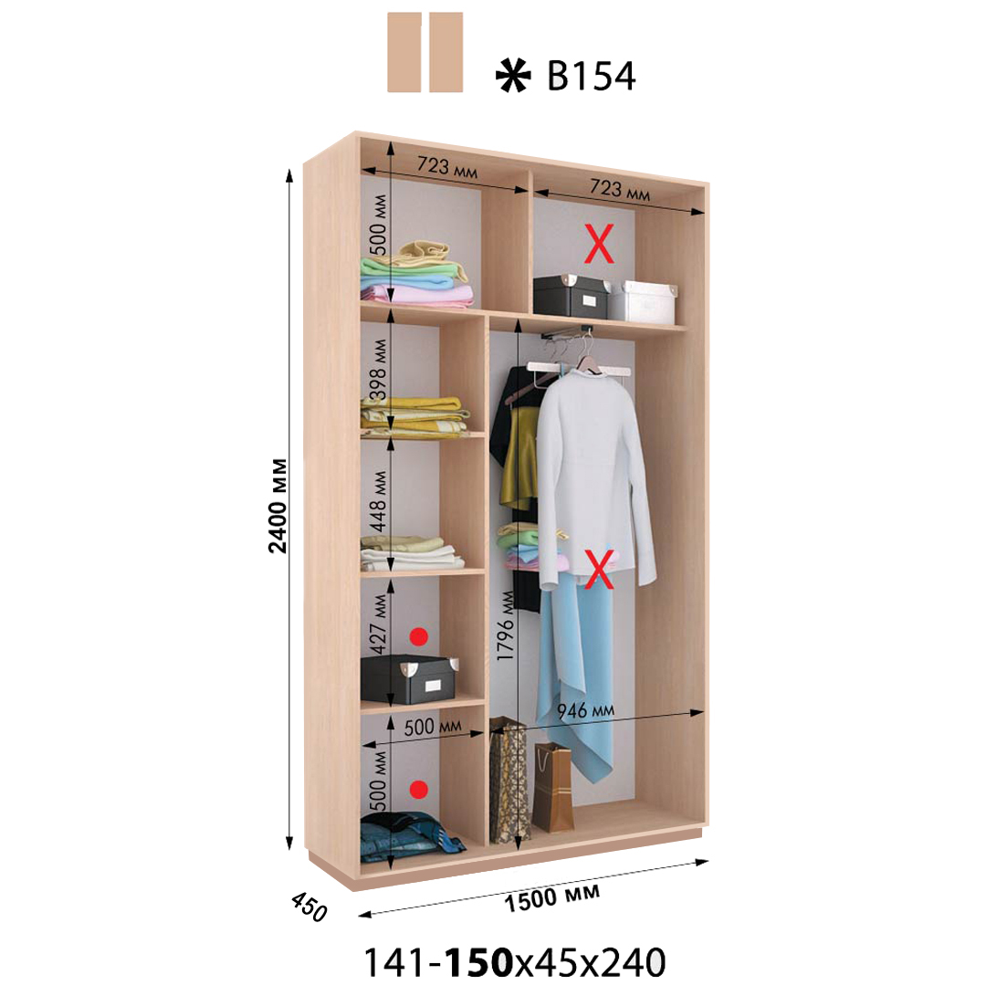 Розміри шафи: 1500*600*2400h / 1500*450*2400h *можливість зміни ширини та вистоти шафи