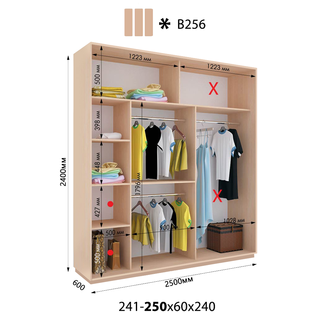 Розміри шафи: 2500*600*2400h / 2500*450*2400h *можливість зміни ширини та вистоти шафи