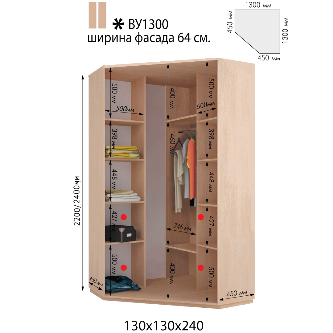 Стандартна кутова шафа ВУ1300 на 2 двері від українського виробника.