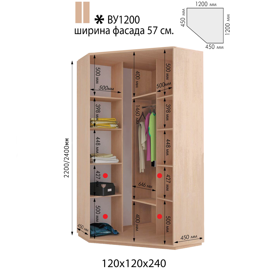 Стандартна кутова шафа  ВУ1200  на 2 двері від українського виробника.