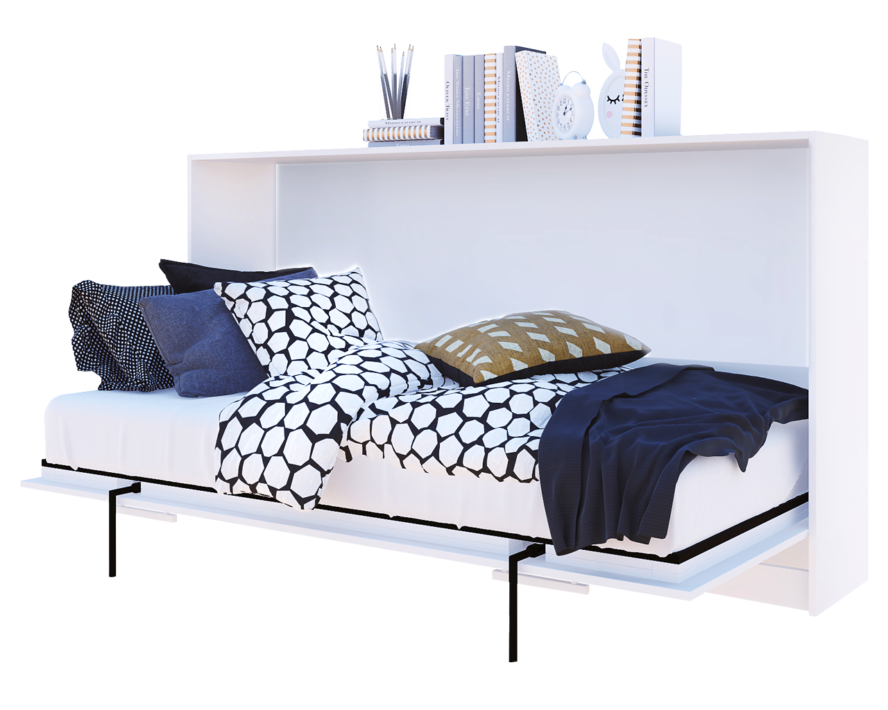 Шафа-ліжко горизонтальне XS виглядає як великий комод для речей, але коли відкриєш то з’являється зручне ліжко. Гідравлічні пружини допоможуть вашій дитині легко відкрити і закрити ліжко. Основа під матрац металевий каркас з буковими ламелями.