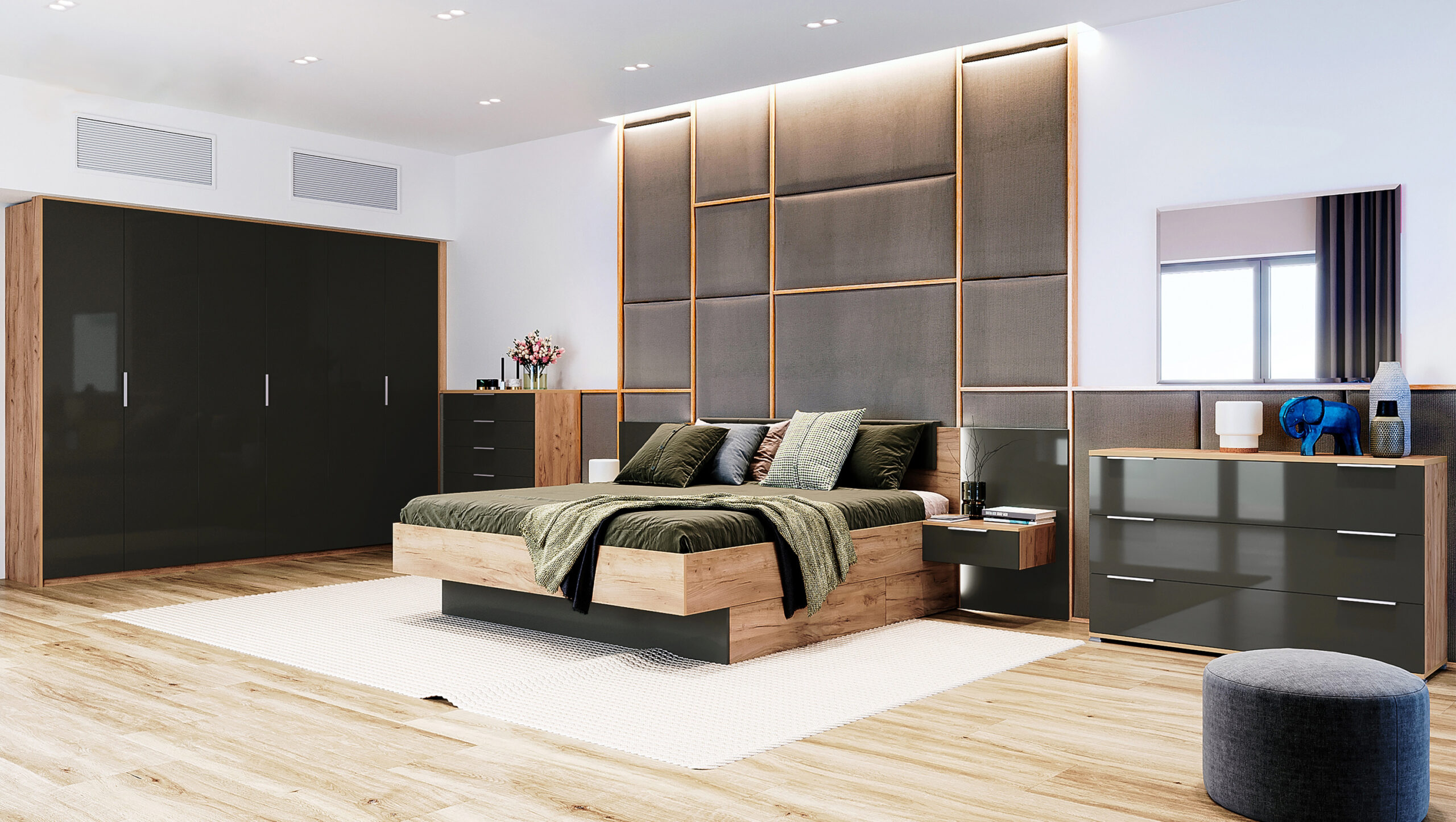 Готові спальні гарнітури стануть чудовою знахідкою для тих, хто не бажає витрачати свій час на підбір меблів для спальні. Виконані в одному кольорі, стилі, спальні гарнітури – це поєднання необхідних елементів меблів в спальні.