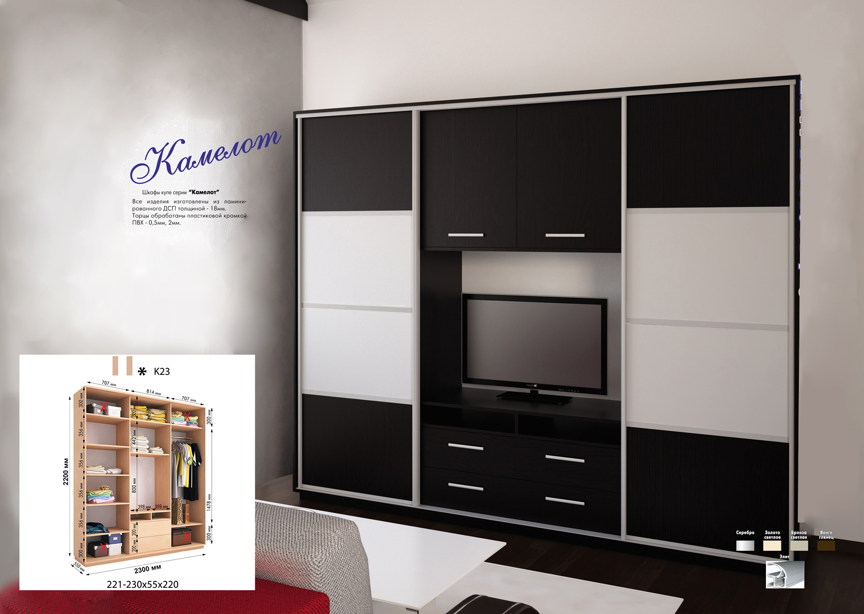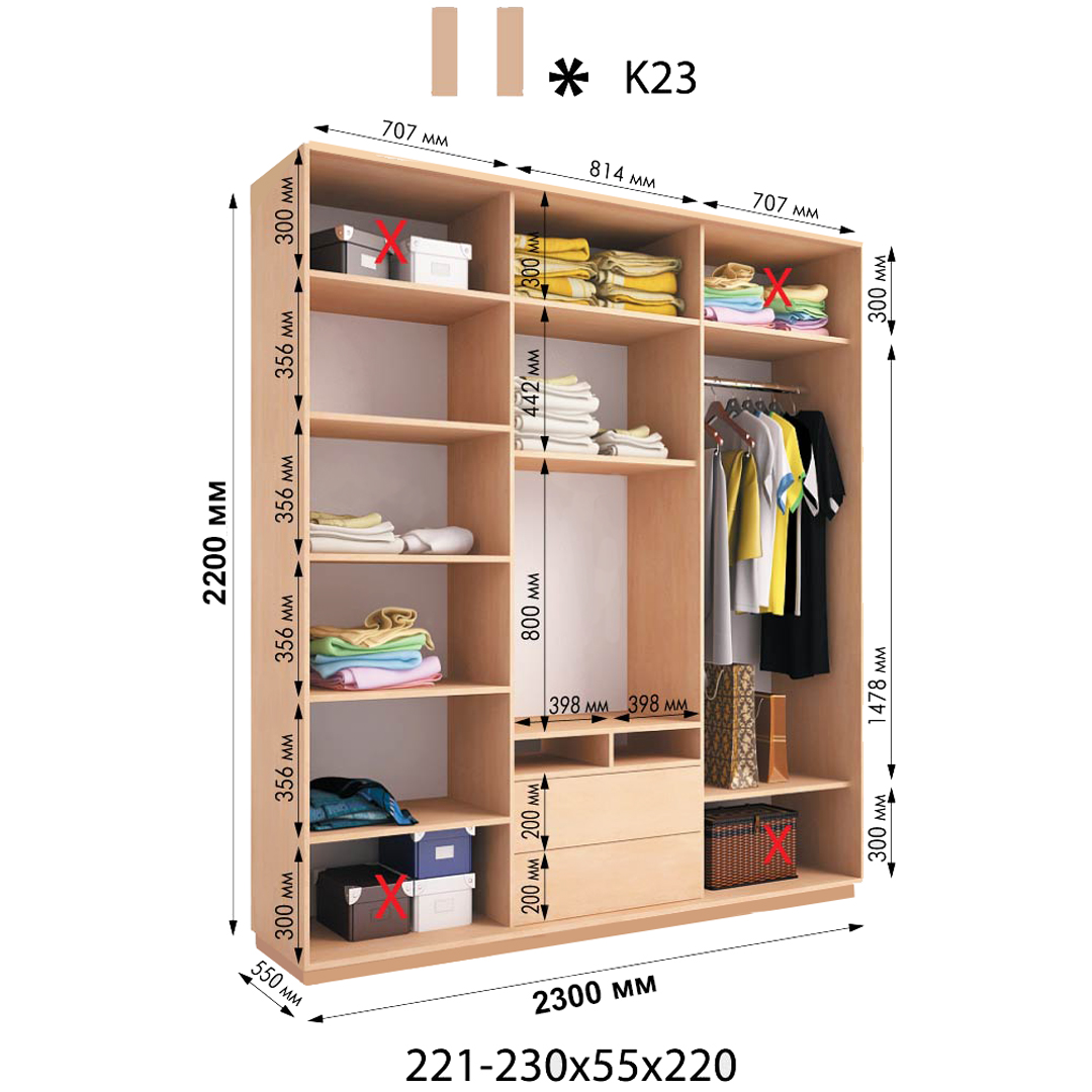 Розміри шафи: 2300*550*2200h