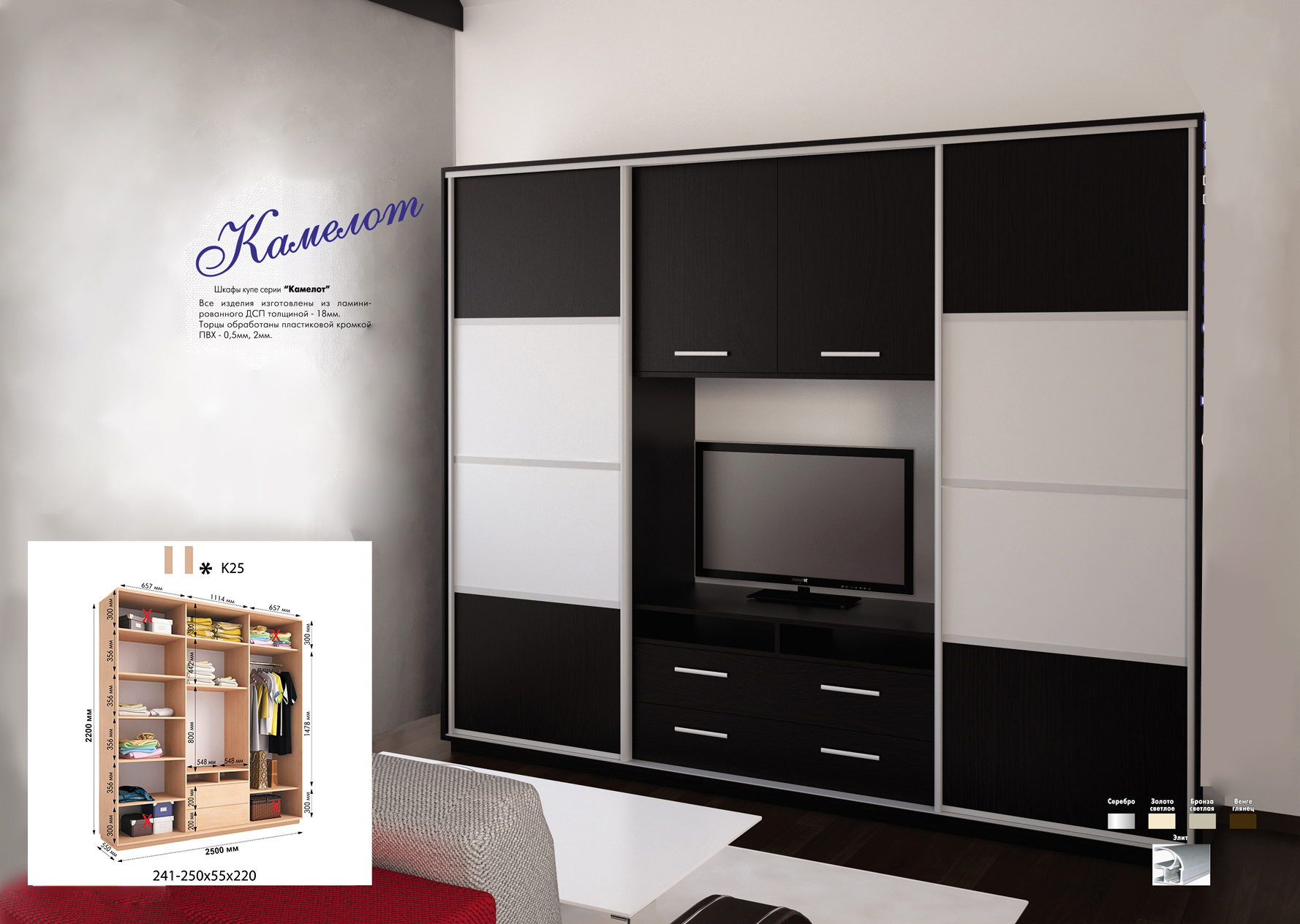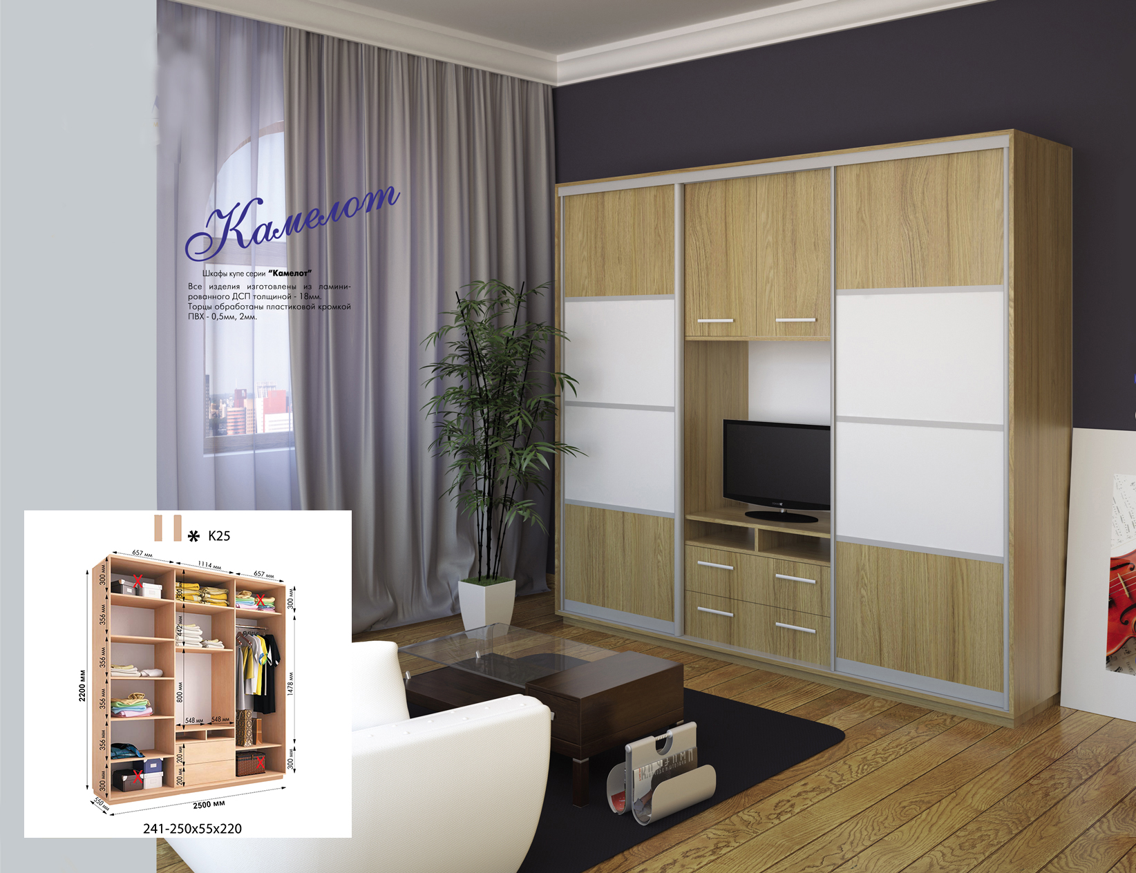 Розміри шафи: 2500*550*2200h
