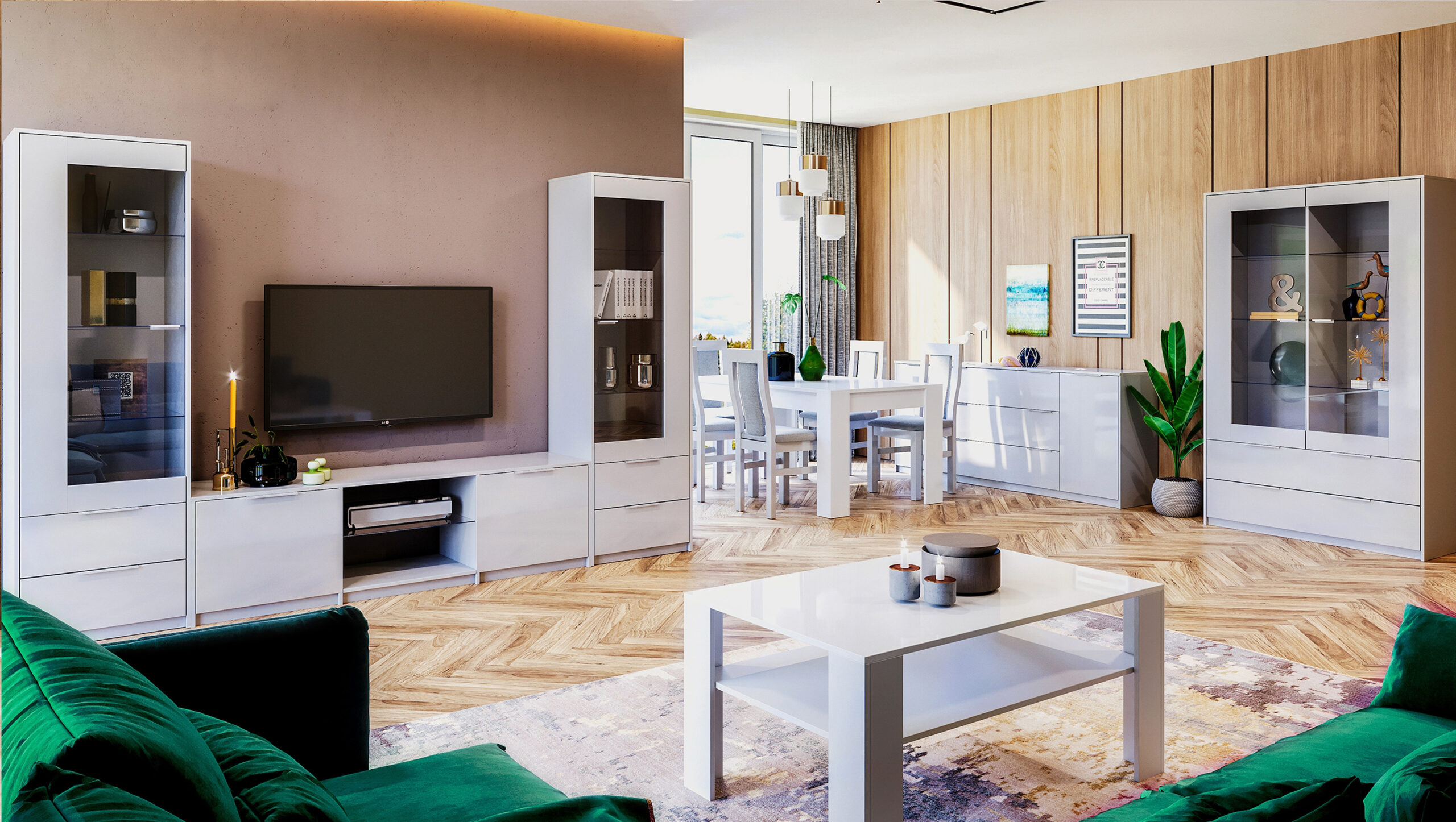 Білосніжна і стильна модель в стилі мінімалізм, ідеально підійде для квартир в сучасному стилі. Гарнітур даної моделі виготовлений в благородному білому кольорі і характеризується чіткими і строгими лініями, практичними формами, якісної і оригінальною фурнітурою. Стиль, ергономіка та функціональність в одному комплекті для Вашої ідеальної вітальні.