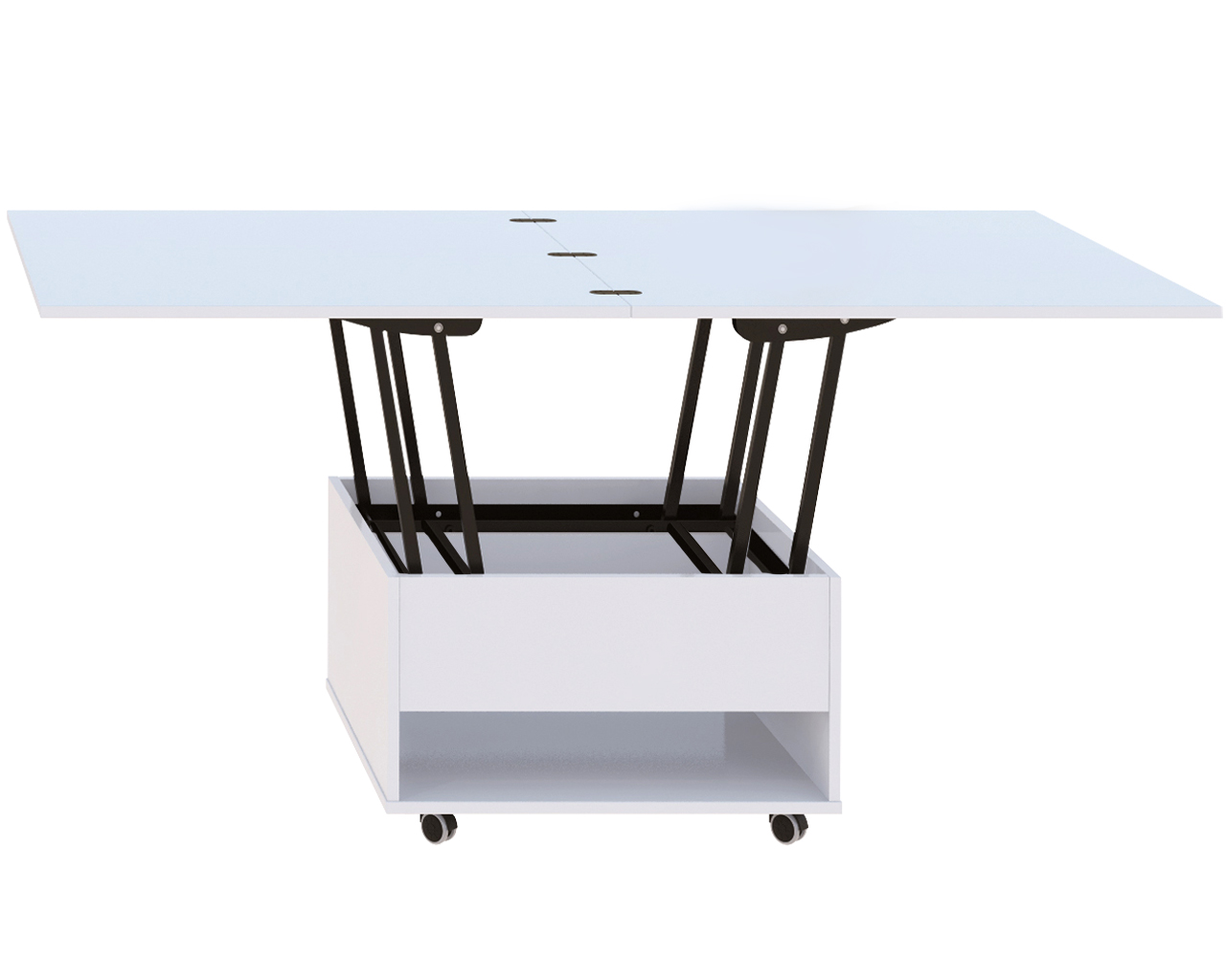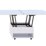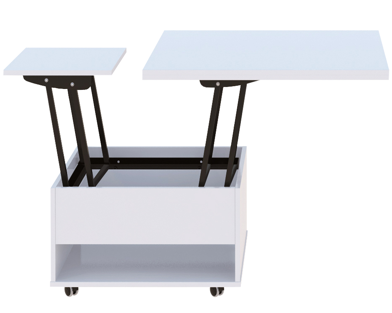 Журнально-обідній стіл-трансформер, який дозволяє економити простір в приміщенні. красивий, функціональний і практичний стіл. Стільниця являє собою дві скріплені рояльними петлями панелі, встановлені одна над іншою. При необхідності верхню частину можна відкинути в сторону, за рахунок механізму трансформації він легко перетворюється в банкетний, кухонний або обідній стіл. І вирішує питання розташування всіх гостей на свята і сімейні торжества.